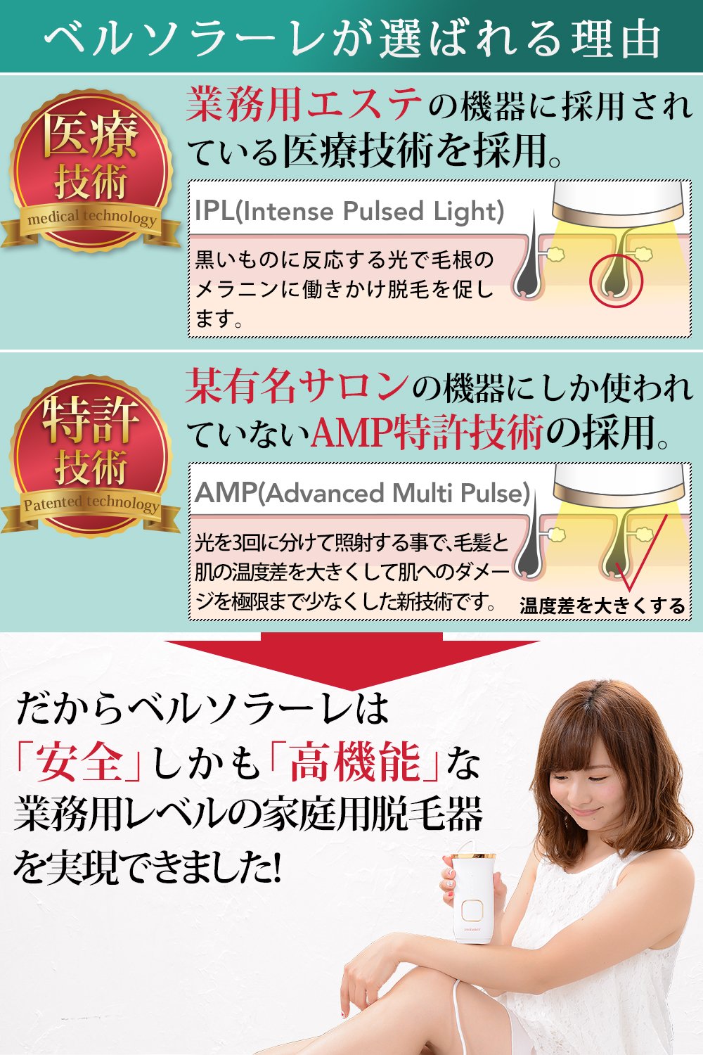 We adopt the patented technology which can reduce the damage to the skin by irradiating light in three separate times and can utilize the light energy for hair loss without waste.
