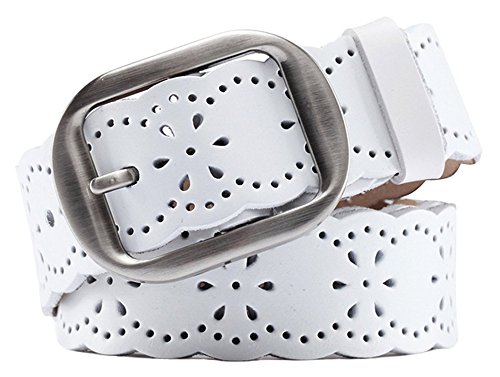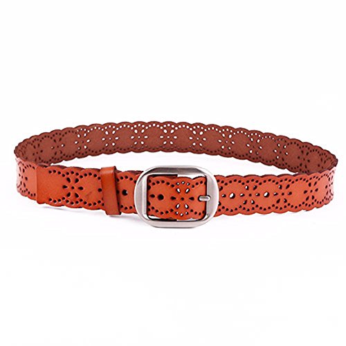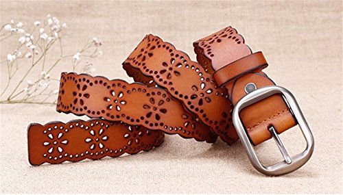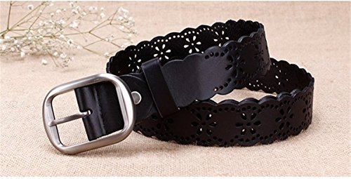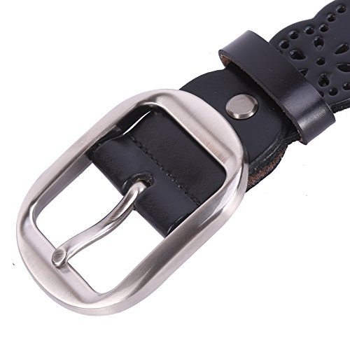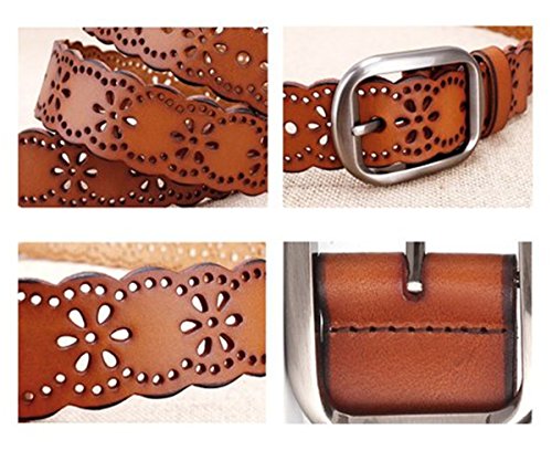 -. Title : JasGood Women's Hollow Flower Genuine Cowhide Leather Belt With Alloy Buckle