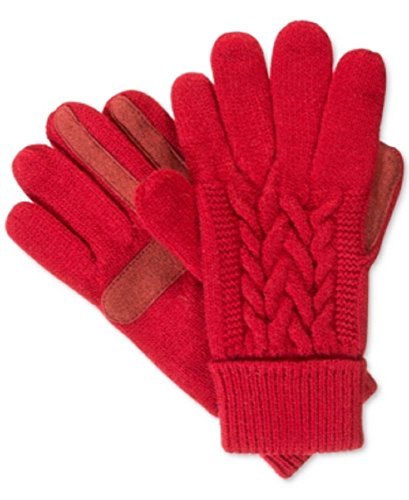 Isotoner Signature Solid Triple Cable Knit Palm SmarTouch Tech Gloves in Red, One Size