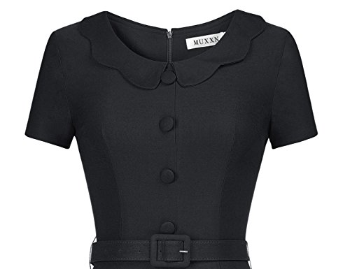 Feature:Peter Pan Neckline,Short Sleeve,Back Split,Front Button Decorated Dress