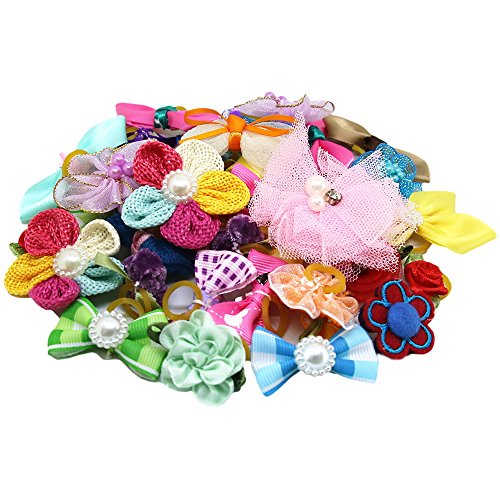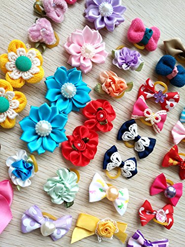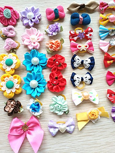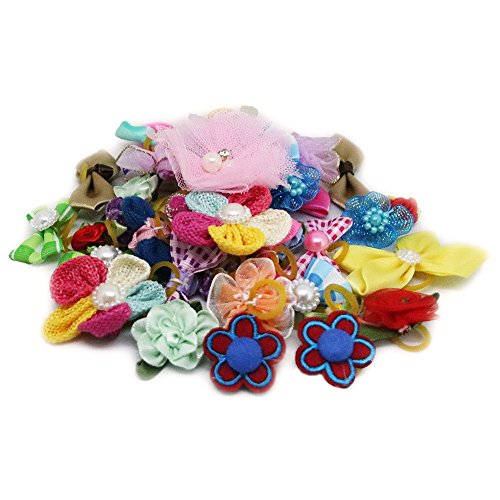 -. Title : PET SHOW Assorted Styles Flowers Bows Rhinestone Topknot Dog Hair Bows with rubber bands for Small Pet Dogs Cat Grooming Products Assorted Color Pack of 50