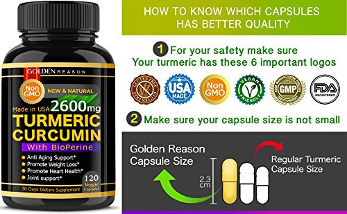 (Golden Reason)/Vitamins Dietary Supplements/Herbal Supplements/DIRECT FROM USA/Turmeric Curcumin 2600mg. Anti Aging Support. Joint Support. Promote Weight Loss and Heart Heal...