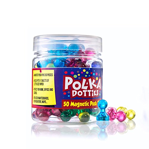 Studio : Polka-Dotties Publisher : Polka-Dotties Binding : Office Product Product Description USES: Pushpin magnets are the perfect replacement for classic thumbtacks or pushpins. They could be used on magnetic whiteboards, for reminders on the fridge, on metal borders of office cubicles, for color-coding projects, on maps, or to post photos on a refrigerator. Map magnet, Fridge Magnet, Calendar Magnet, Whiteboard Magnet, Photo Magnet, File Cabinet Magnet, dishwasher magnets, you name it, it works. These small, strong magnets have an easy grip so adjusting them is a breeze. BONUS: We included 10 adhesive rubber magnets so that if you want to use these magnetic push pins on a non-magnetic surface, you could stick the rubber magnets on the underside of the surface to create a magnetic pull on the spots you'll want to apply the pins to.