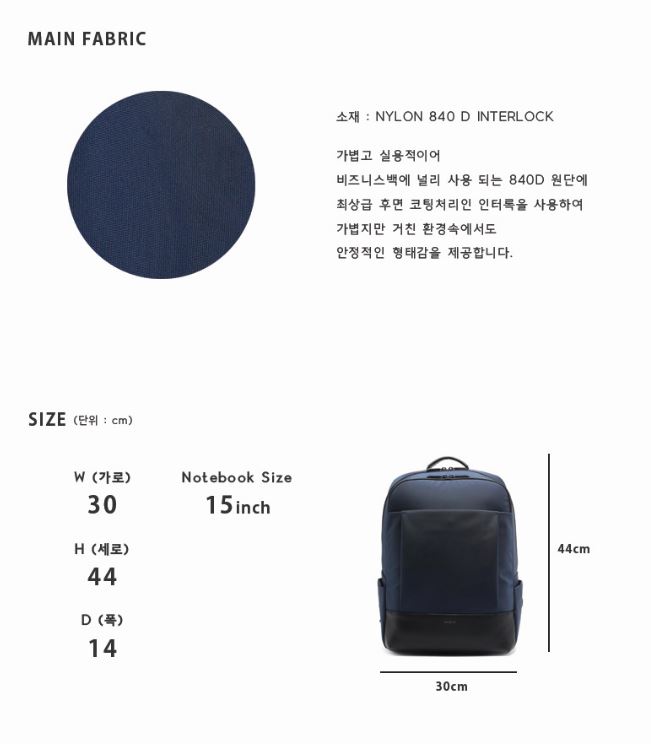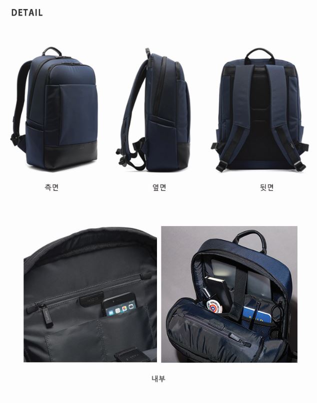 나일론에 합피를 콤비로 하여 세련된 믹스&매치가 돋보이는 캐주얼 남성 백팩입니다.