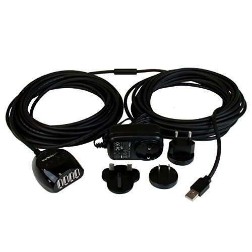 StarTech.com 50-Feet USB 2.0 Active Cable with 4 Port Hub Long USB Cable, Black (USB2EXT4P15M)