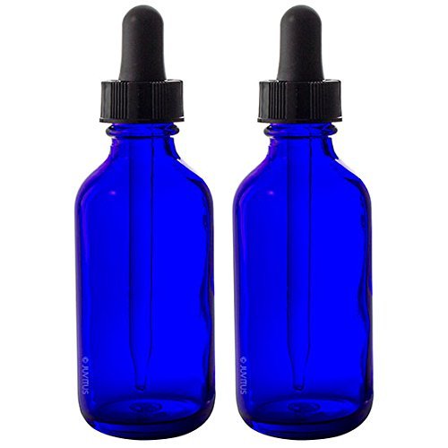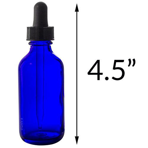 2 oz Cobalt Blue Glass Boston Round Dropper Bottle (4 pack) + Funnel and Labels for essential oils, aromatherapy, e-liquid, food grade, bpa free