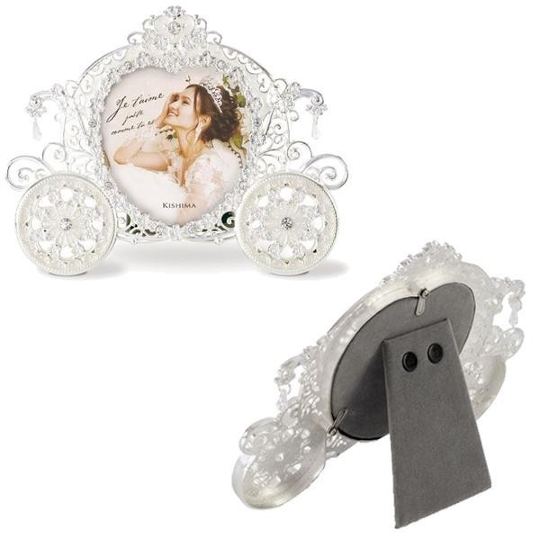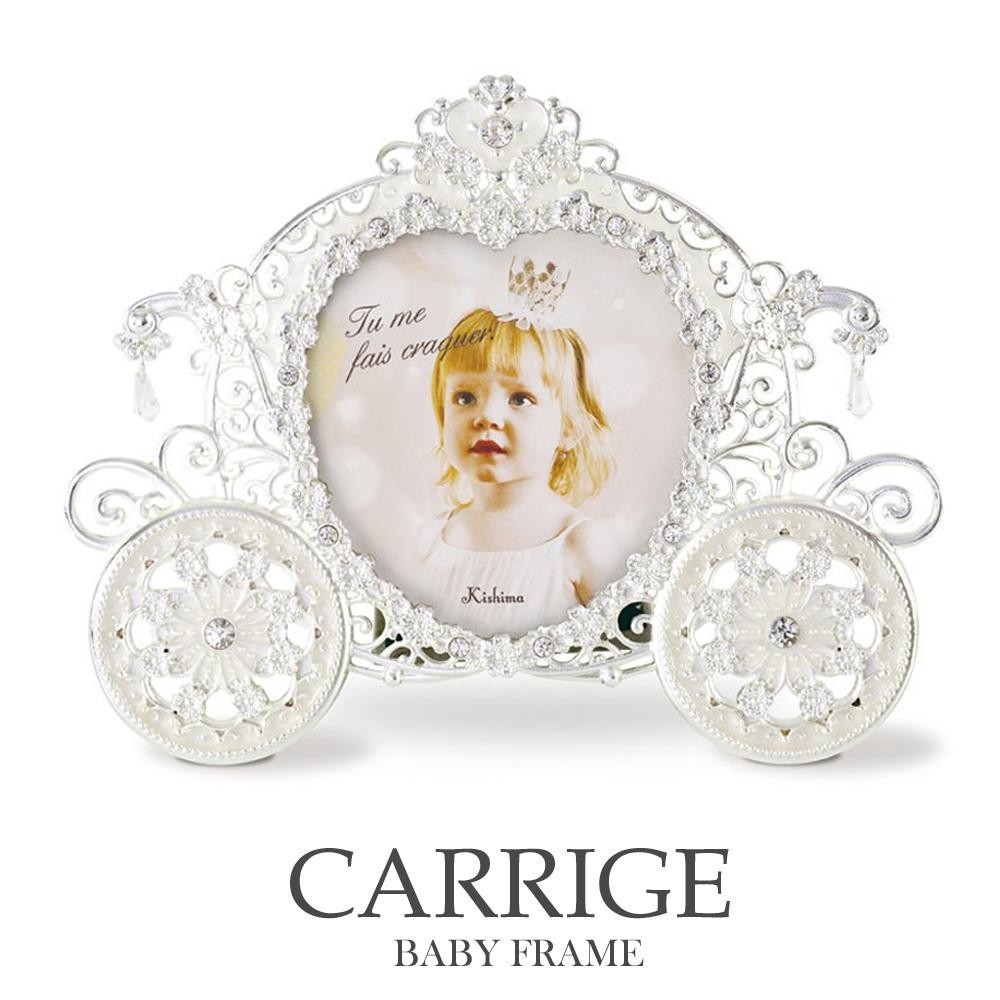 | おとぎ話に出てくる馬車をイメージしたフォトフレーム。繊細なラインストーンのキラキラとした輝きが、赤ちゃんの表情をより華やかに演出します。 |