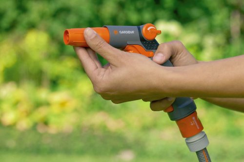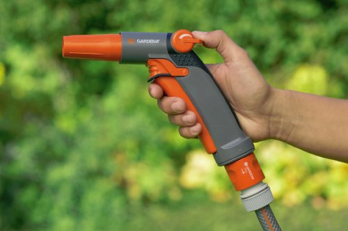 -. Feature : Gardena comfort garden hose sprayer provides a simple and convenient solution to all of your watering, soil, and lawn care needs / Gardena sprayer has four selectable spray patterns hard jet, flat jet, soft spray, and full spray / Soft plastic components offer a comfortable grip / Ideal for cleaning and watering / 1-year warranty