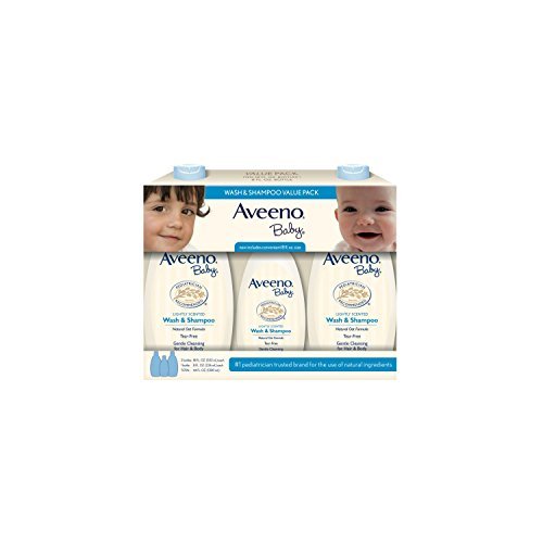 -. Binding : Misc. -. Brand : Aveeno -. EAN : 0381371163205 -. Feature : Two 18-fl. oz. bottles / One 8-fl. oz. bottle / Natural oat formula / Lightly scented / Tear free, soap free and paraben free -. Label : Aveeno -. LegalDisclaimer : In the unlikely event that the item is sold out or on backorder, we will refund 100% of your money.There is a 20% restocking fee for each item returned for a refund. -. Manufacturer : Aveeno -. MPN : 875545 -. PackageQuantity : 1 -. PartNumber : 875545 -. ProductGroup : Beauty -. ProductTypeName : BEAUTY -. Publisher : Aveeno -. Studio : Aveeno -. Title : Aveeno Baby Wash & Shampoo Value Pack (2 -18 fl. oz, 1 - 8 fl. oz.) -. UPC : 619730709635