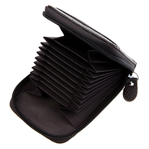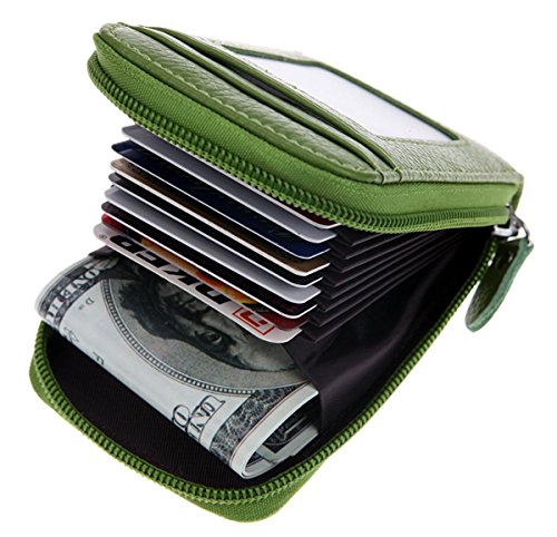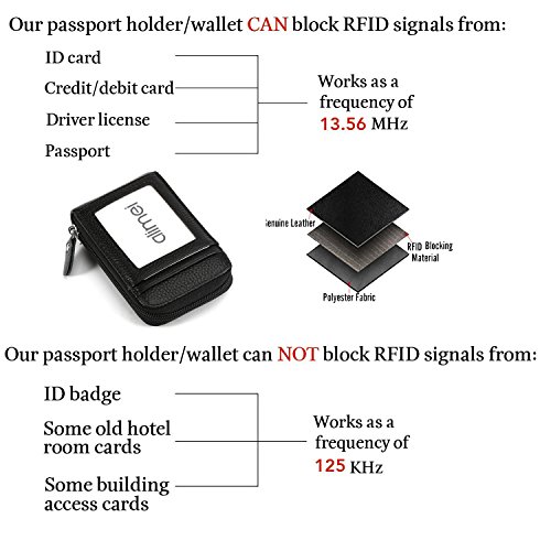 -. Feature : Zip Closure,100% Genuine Leather Card Wallet / Premium Material- Made of high quality genuine leather with fabric lining and soft hardware. / Safety & P.R.Ivacy - Our wallets are equipped with advanced unique proP.R.Ietary blocking material, which blocks RFID signals and protects the valuable P.R.Ivate information stored on RFID chips from unauthorized scans. / Compact Design & Full Capacity - 9 individual credit card slots, 2 cash slots(coin slots), and 2 outside slots, keep cards well organized. With good smooth zippers, it's so convenience for your daily use. / Super Stylish For Travel - Its compact size of 3.0"L x 4.5"W x 0.6"H inches allows you to bring it along in your handbag, backpack, or pocket. Great and convenient for the everyday commuter or traveler.