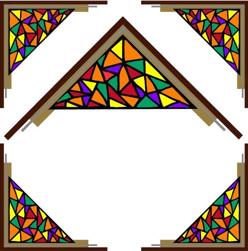Studio : Window Art in Vinyl Etchings Publisher : Window Art in Vinyl Etchings Binding : Kitchen Product Description Multicolored triangle corners of orange, red, green, yellow and purple. Clear static-cling vinyl decal effortlessly attaches to glass without the need for any adhesive. Advanced UV protection insures material will not discolor or damage glass. Vinyl decal material and ink are safe for outdoor or indoor use. Simple to remove, the vinyl decals can be easily reapplied without loss of static cling. Many standard sizes are available, custom sizes available upon request. Note: The large image in the center is only intended to provide a detail view and is not included with the set of four individual corner decals. 0