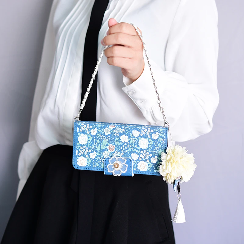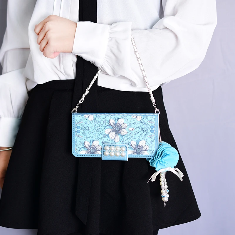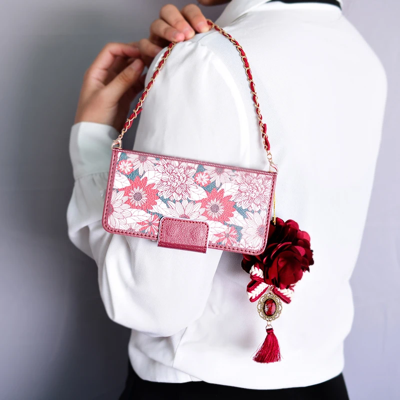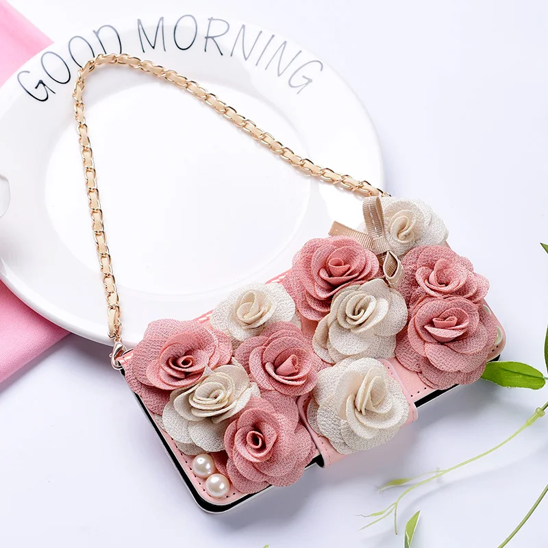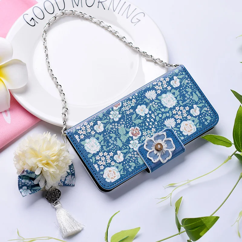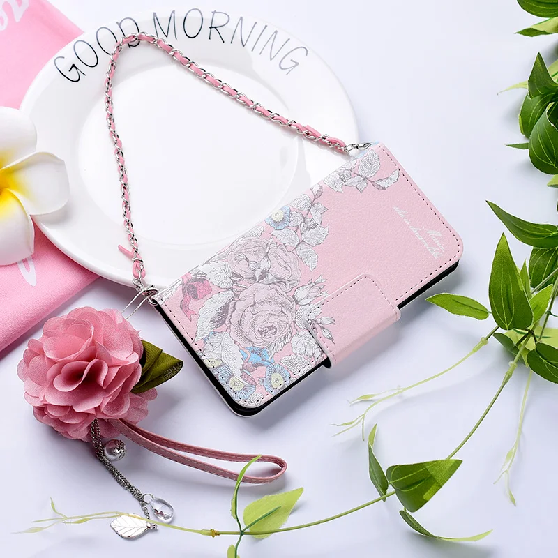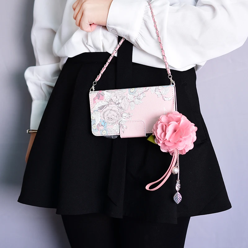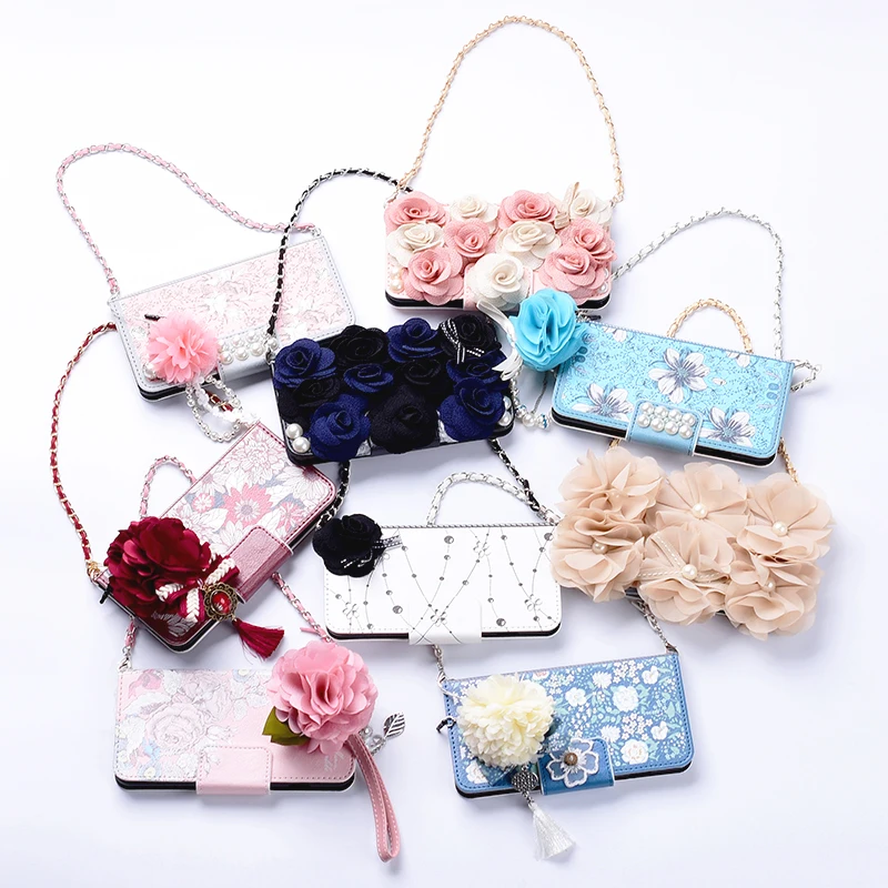 Style:Flip Case Portable Shoulder Chain Flower Design