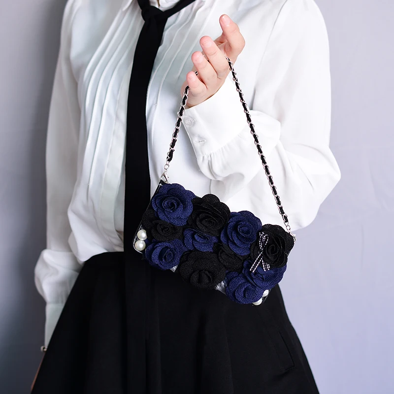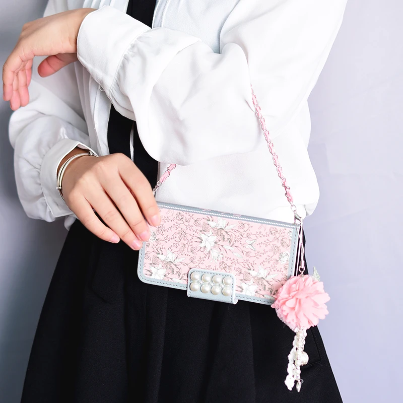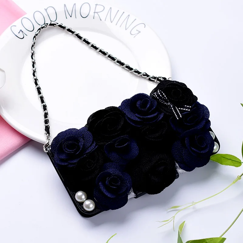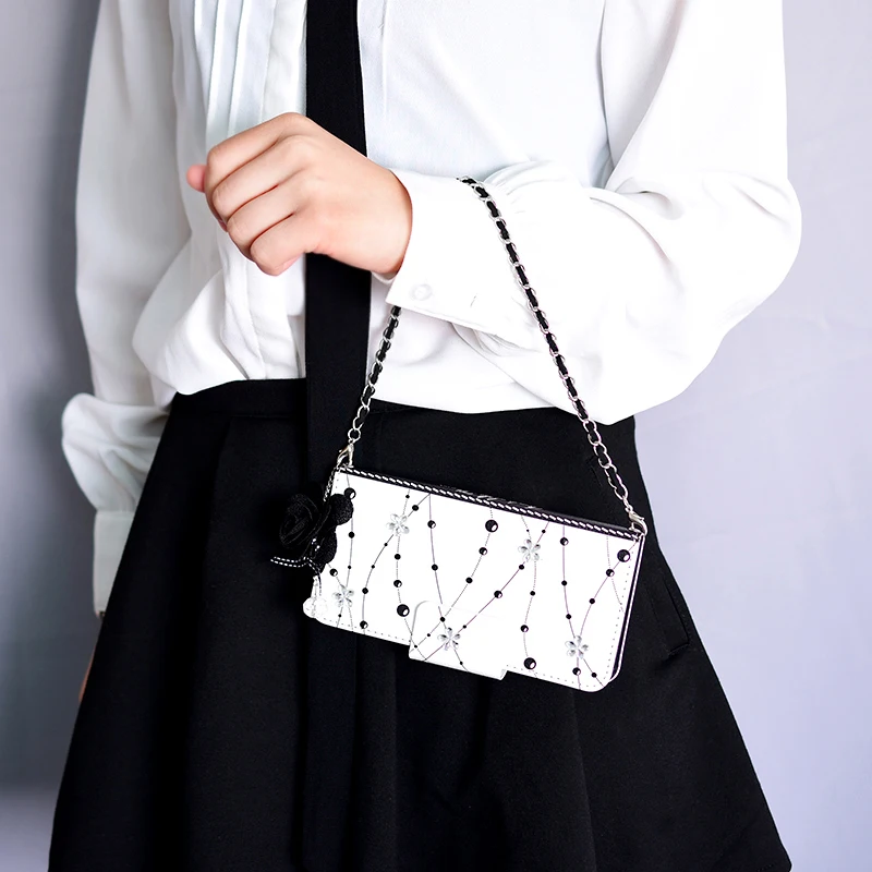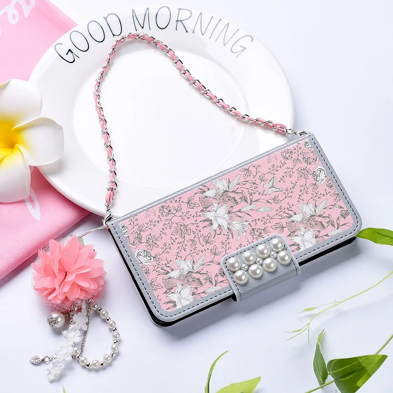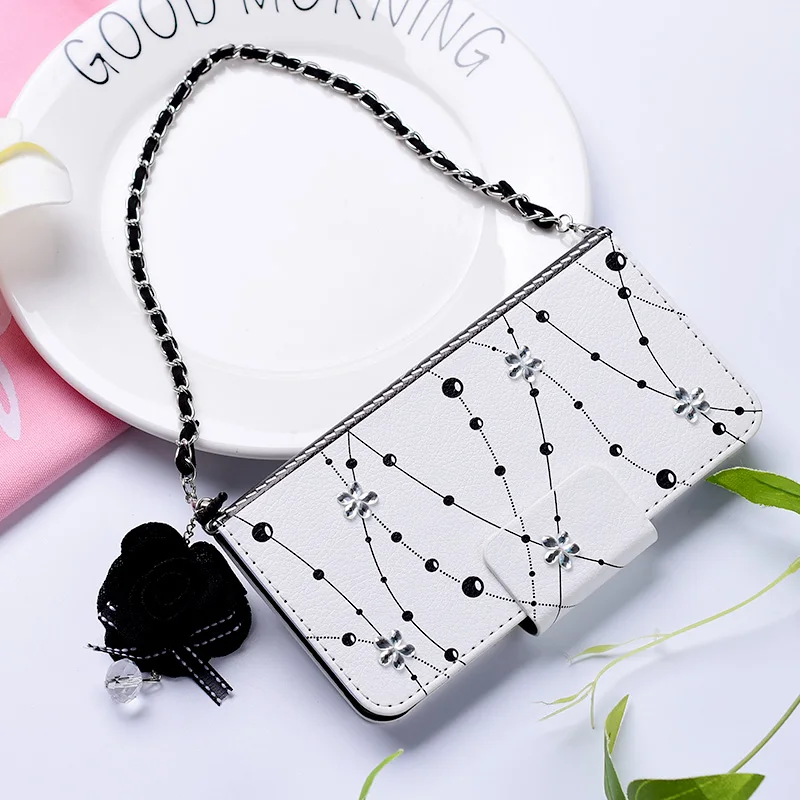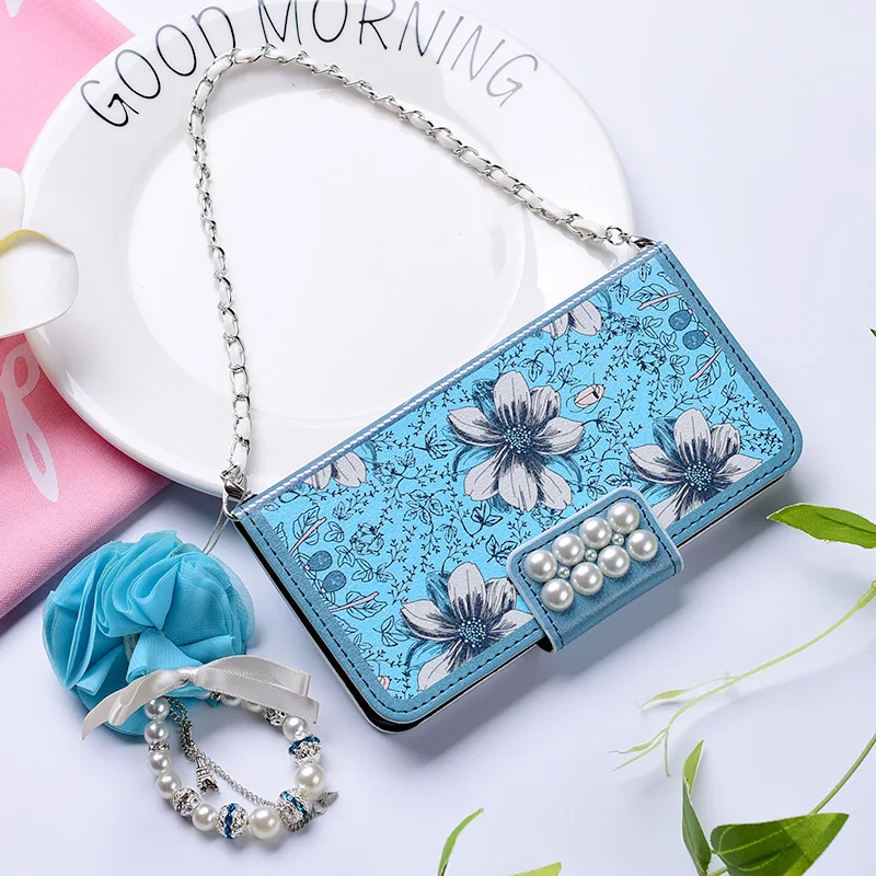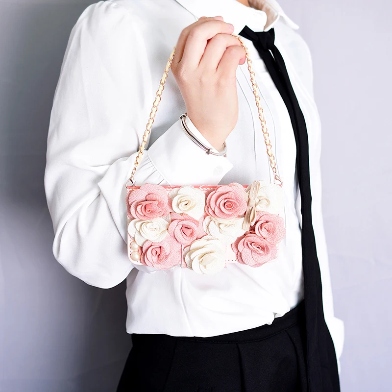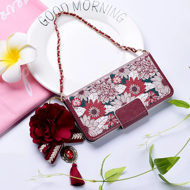 Style:Flip Case Portable Shoulder Chain Flower Design