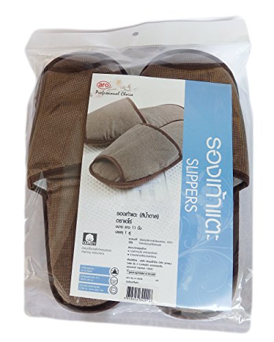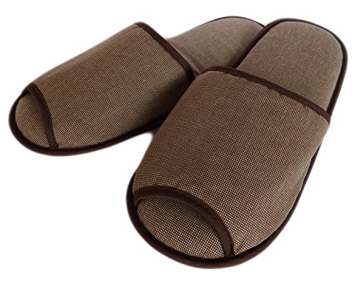 -. Title : (2 Pairs) Amatahouse Aro Luxury Home Hotel & Spa Open Toe Slippers 100% Genuine Cotton Brown Bath 11inches