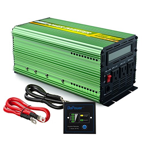 EQUIPMENT: 3 AC outlets (US sockets), remote and LCD display ( You can see: 1.Battery pattern 2.Battery voltage 3.Battery power 4.Voltage display: Inverter output voltage 5.The pattern display and flash when the inverter is in protection mode.)