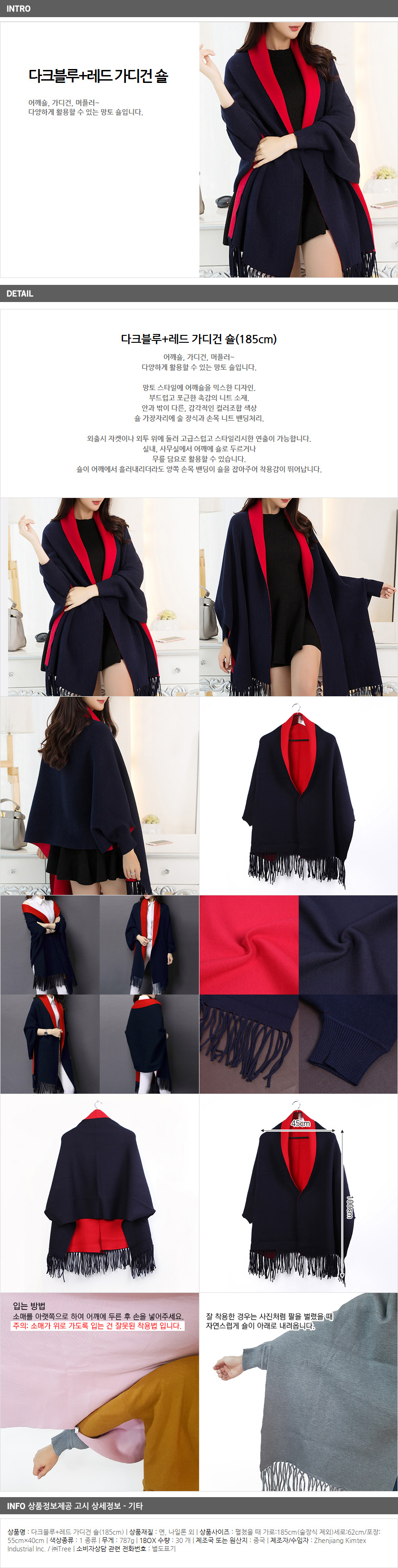 Muffler Red Cardigan 185cm Women Shoulder Shawl Dark Blue