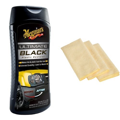-. Title : Meguiar's G15812 Ultimate Black Plastic Restorer - 12 oz. with 3 AmazonBasics Thick Microfiber Cleaning Clothsv