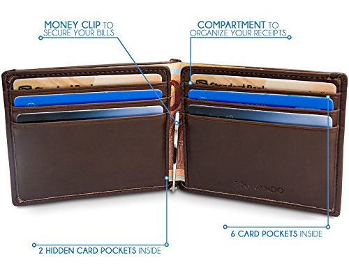 Fed up with the old over-sized wallet, that bulges out your back pocket? With our Slim?Wallet you can hold up to 12 credit cards and bills while slimimg down your pocket! You can use the cardholder?not only to hold credit cards, but also to clip bills inside. Our slim wallet was designed to fit perfectly in your pocket. What you can do with the Travando® Slim Wallet: - Hold up to 12 credit, debit and other cards