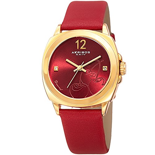 -. Title : Akribos XXIV Women's Quartz Stainless Steel and Leather Casual Watch, Color:Red (Model: AK902RD)