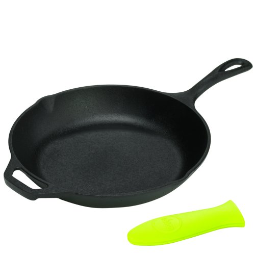 -. Title : Lodge Logic 10 Inch Cast Iron Chef's Skillet with Helper Handle and Free Red Silicone Handle Holder
