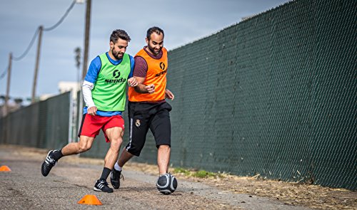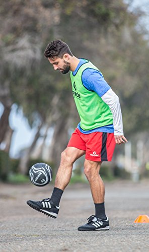 -. Feature : Designed with 32 panels sewn together, producing a near perfect sphere once inflated, hand stitching provides tighter and stronger seams; Intended for game play on asphalt, concrete, other red terrain, and hard courts / Each panel is made with rubberized materials, and therefore has a stronger grip compared to regular soccer balls; Players should be cautious when playing on hard surfaces, as the ball might be sticky when hit with the inside of the foot / Features 3 layers of polyester/cotton hybrid linings placed between the cover and the bladder to help the ball retain its shape and bounce / Inflatable latex bladder which offers the softest feel and provides better surface tension / All Senda balls are Fair Trade Certified, ensuring all workers receive at least the national minimum wage, that there is no child labor involved and that the health and safety of workers is safeguarded