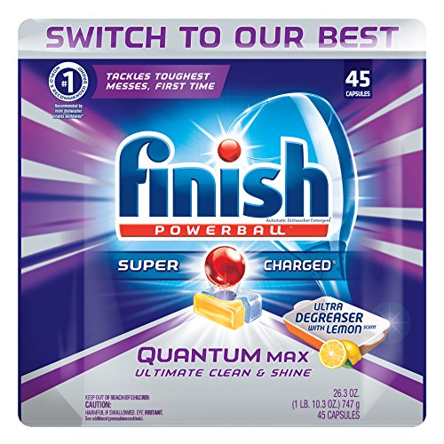From the World's #1 Recommended Brand*, Finish Quantum Max dishwasher detergent tackles whatever you throw at it. Our Powerball supercharges the capsule to tackle the toughest messes the first time for an ultimate clean shine. Its multi-chamber dishwashing technology activates each of the three dish cleaning ingredients when it's needed during the cycle, so all you have to do is sit back and relax. The Shine Protect Glass action ensures your glassware maintains a sparkling shine for longer, and the Silver Protection provides added protection for your silverware. Finish Quantum tablets are safe for septic systems. The tablets are easy-to-use, wrapper free pre-measured to enhance your dishwashing experience. *More dishwasher brands recommend Finish products Worldwide than any other brand. Recommendations as part of Co-marketing Agreements. 0 |