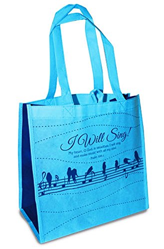 I Will Sing Bird Notes Psalm 108:1 Blue Reusable 12 x 12 Eco Friendly Tote Bag Pack of 12