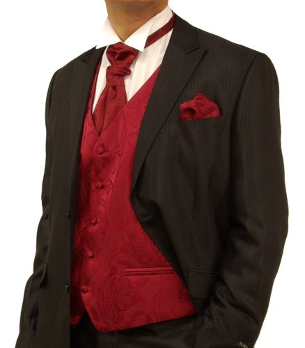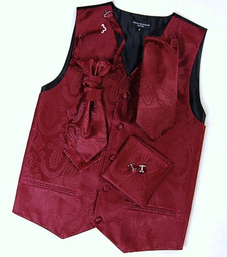 - Title : Paul Malone Wedding Vest Set Burgundy 5pcs Tuxedo Vest + Necktie + Ascot + Hanky + 2 Cufflinks XXXL