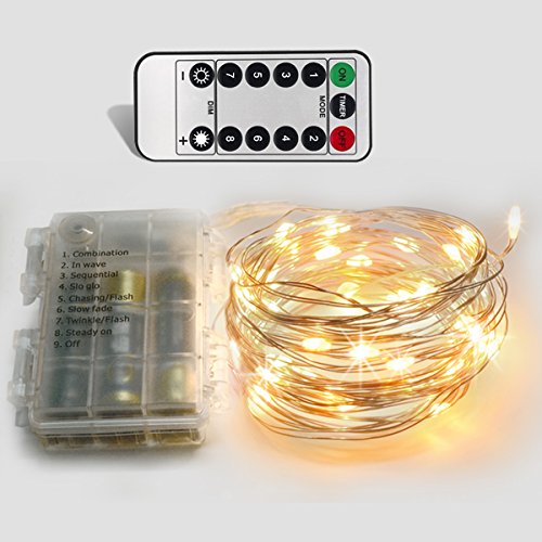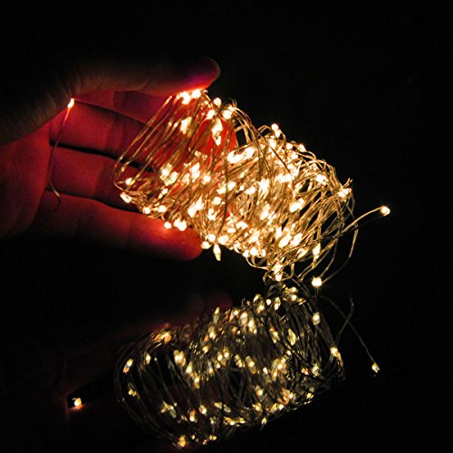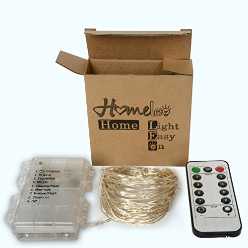 Homeleo 10M 100LED Battery Powered LED String Lights w/ Remote Mini Tiny LED Lamps on Flexible Thin Silver Wire Blinking Twinkle Steady On LED Starry Fairy Lighting(Remote,Warm White)