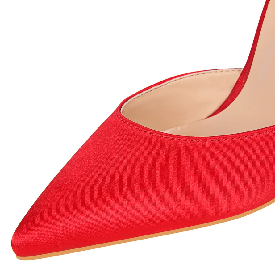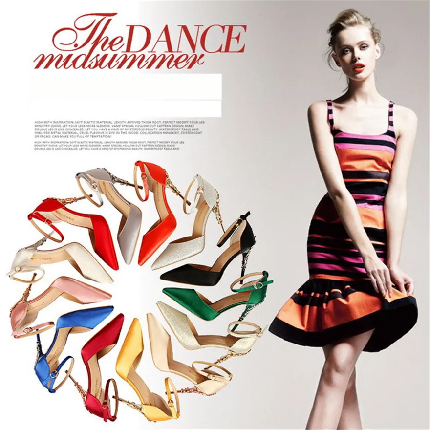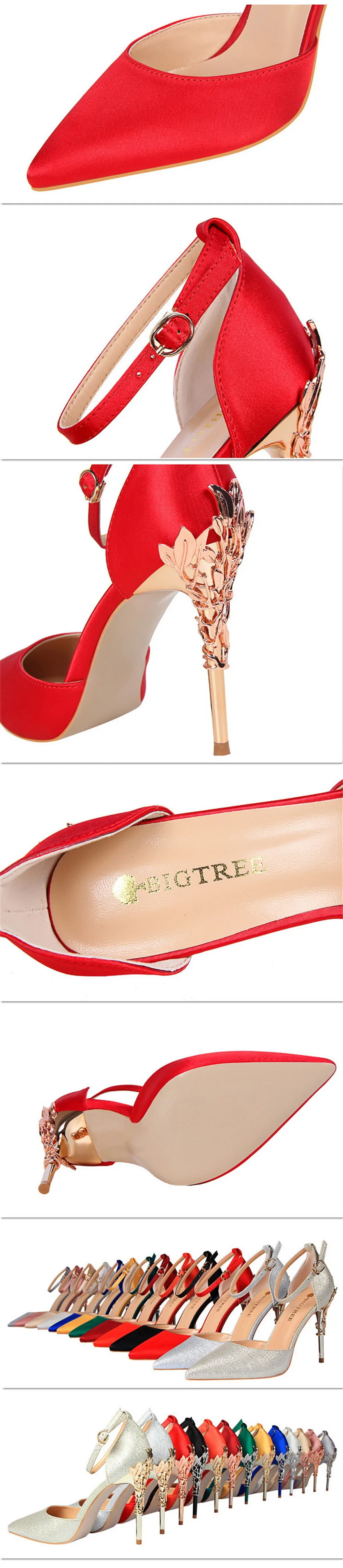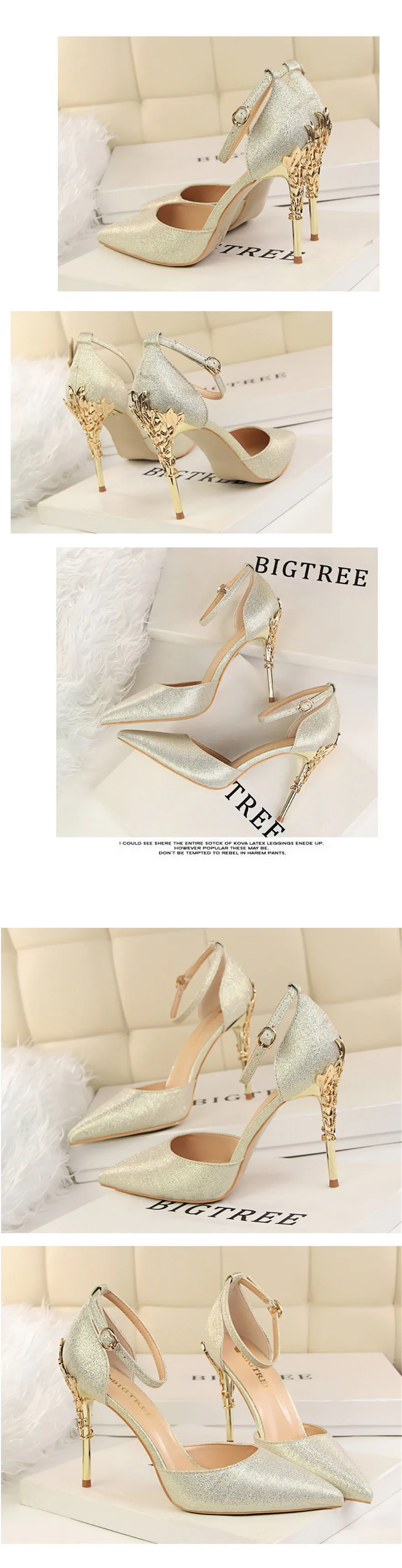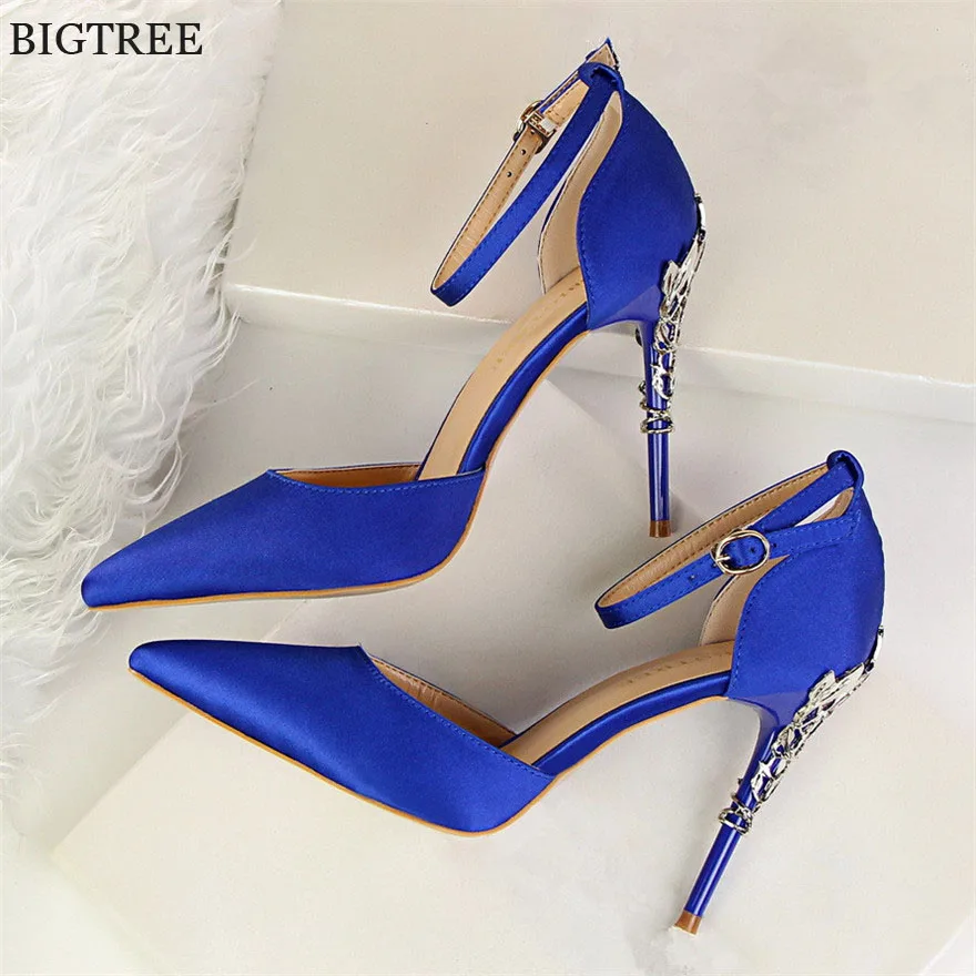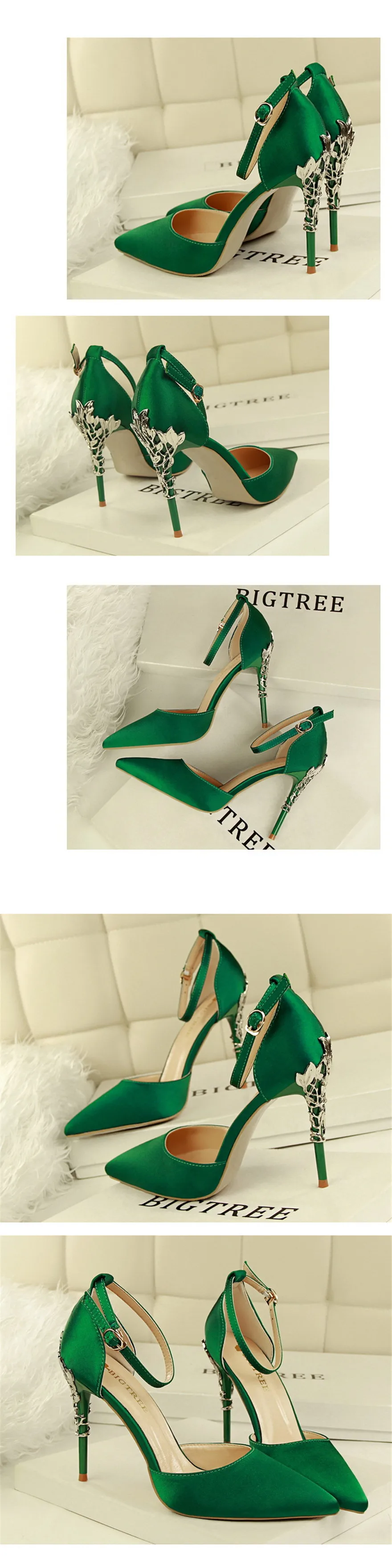 Item:Solid Silk Pointed Toe Buckle Shallow Women Carved Metal Heels Sandals