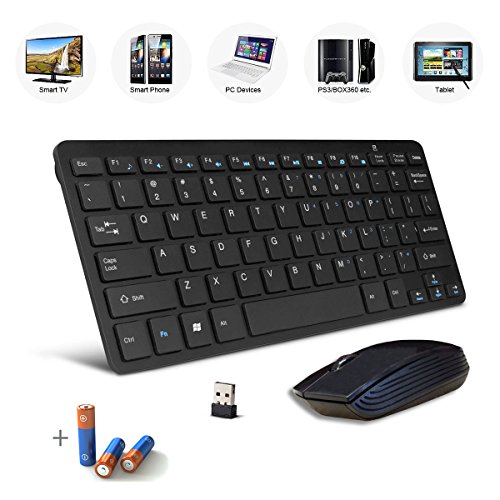 -. Feature : Ultra-thin QWERTY keyboard and mouse set is ideal for use with Laptop, PC, Smart TV, Tablet etc. / Low-profile, whisper-quiet keyboard keys ensure comfortable and quiet typing. / High-productivity, ergonomically-designed wireless mouse suits all your needs from office work to gaming. / 2-in-1 nano receiver unifies the mouse and keyboard connections into one USB port, keeping more ports open for other uses. / This product requires batteries which are included!