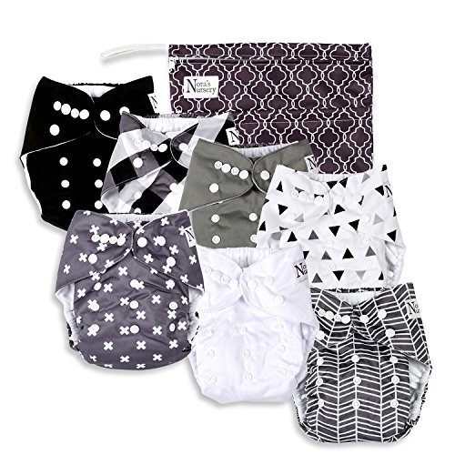 Baby Cloth Pocket Diapers 7 Pack, 7 Bamboo Inserts, 1 Wet Bag by Nora's Nursery