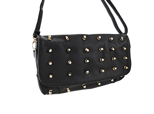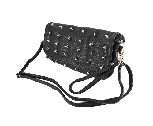 -. Title : Black Convertible Shoulder Bag / Clutch Purse with Golden Spikes