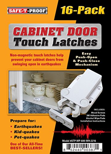 Safe-T-Proof STP-MP-600-WH-2216 White Cabinet Door Touch Latches (16 Count)