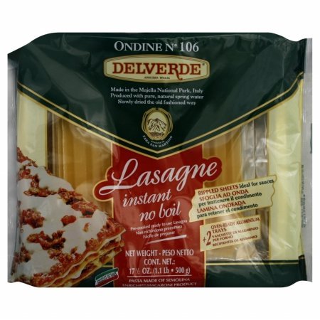 -. Feature : Rippled Sheets Ideal for Sauces. / Easy and Quick. Justt assemble and put in the oven. / Instant Lasagna. No pre-cooking required. / Comes with 2 oven ready Aluminum Trays. / Pasta Made of Semolina.