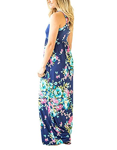 Vemvan Women's Floral Print Round Neck Sleeveless Long Maxi Casual Dress