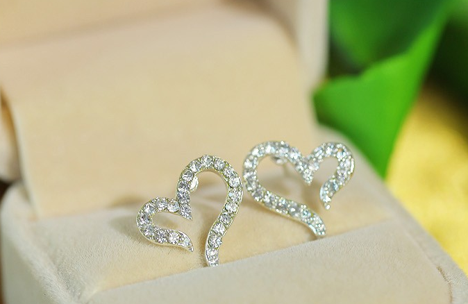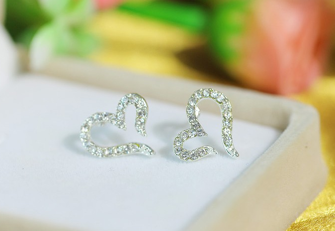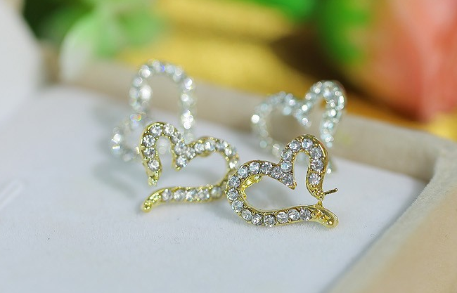 anting cantik love sederhana kristal emas perak untuk wanita hadiah simple promotion of big heart gold crystal silver stud earrings for women New gift JEW SJA0846535262 GHJ qty000