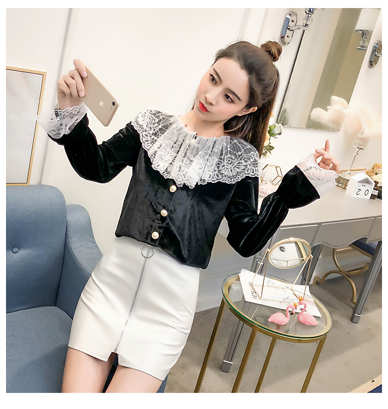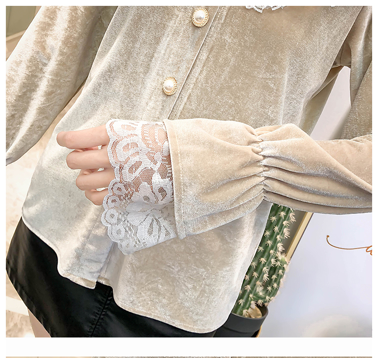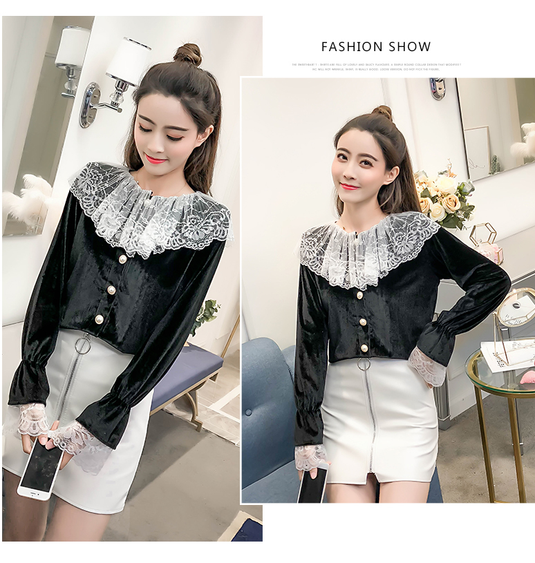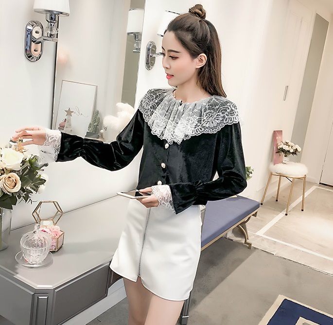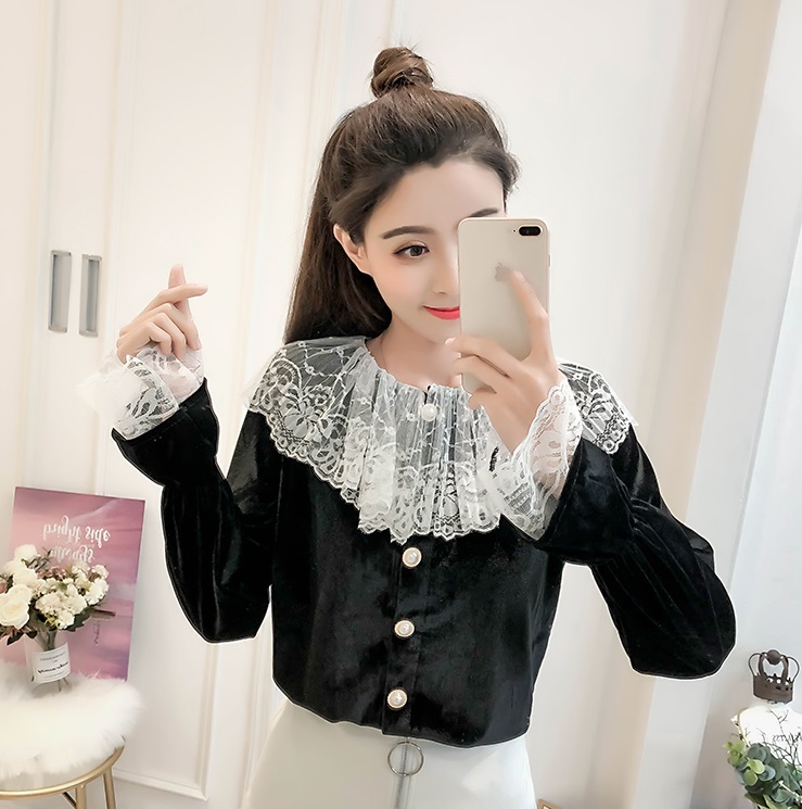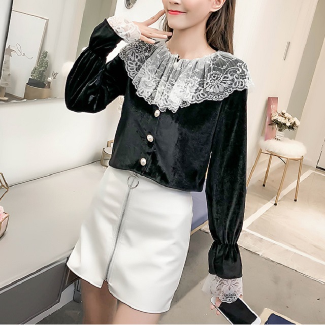 ふわりと透け感のある大ぶりレースを襟元と袖口にあしらった、ガーリーなトップスです☆
