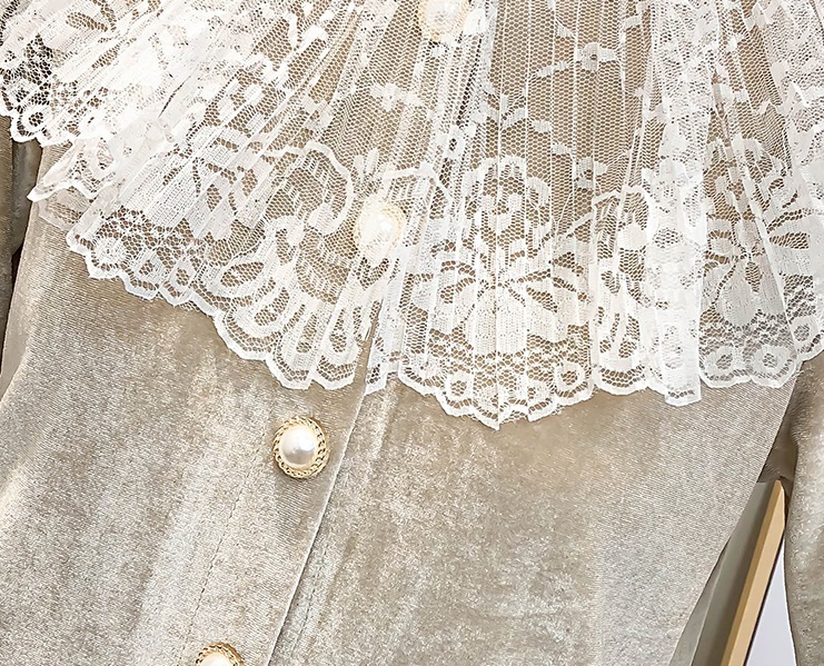 ボタンは大きめパールで可愛いポイント作りも抜かりなし。