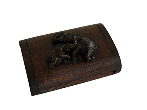 Handmade Curved Rectangular Decorative Teak Wood Box with Elephant decorated - Medium 4.8 Inch