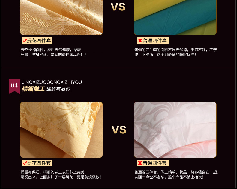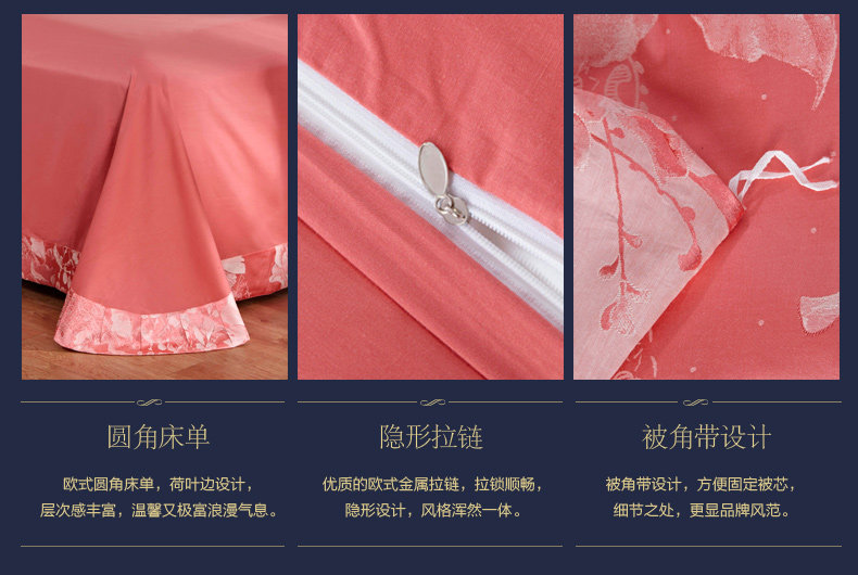 | 温馨提示 | ? 亲们,被套的尺寸要与被芯一致方可配套使用哦!注:由于面料位子裁剪的原因,可能会造成枕套的花纹跟实物图有所区别,图片均为实物 拍摄,因拍摄时的光线及显示器的不同,会造成一定的色差,不属于质量问题,不能接受色差的买家慎重考虑。? | ||