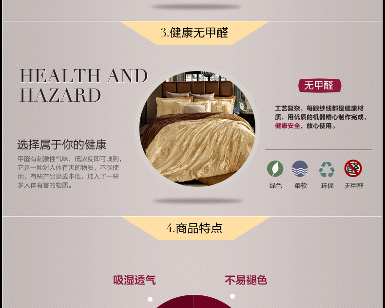 | 产品成分含量 | A版:40%棉60%聚酯纤维(丝棉提花) B版:100%聚酯纤维(磨毛) | ||
