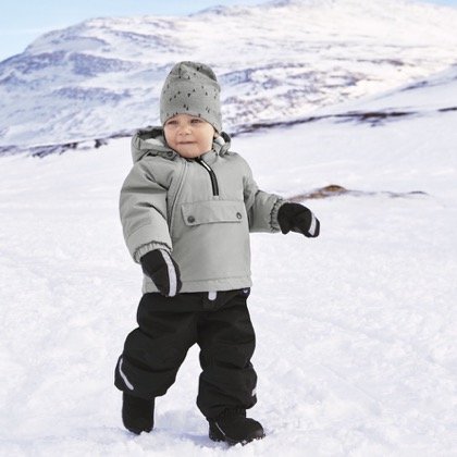Studio : Polarn O. Pyret Publisher : Polarn O. Pyret Product Description Wind and waterproof insulated mitten with a dirt repellent finish. The insulation in this mitten comes with superior warming and thermal properties to keep little hands toasty all winter. Pre-bent fingers increase mobility. High cuff fits over or under outer garment and makes this mitten extremely easy to pull on your baby like pulling on a knee sock! Elastic around wrist and edge. Wide reflective strip at top of mitten. Grip fabric on palms. Shell: 100% Polyamide Lining: 100% Polyamide Padding 100% Polyester 0