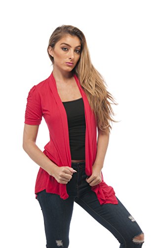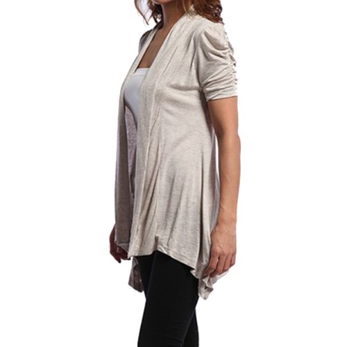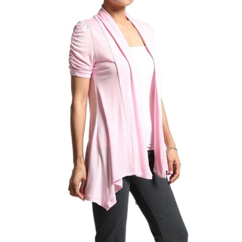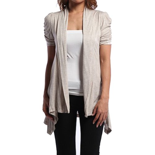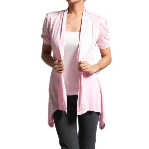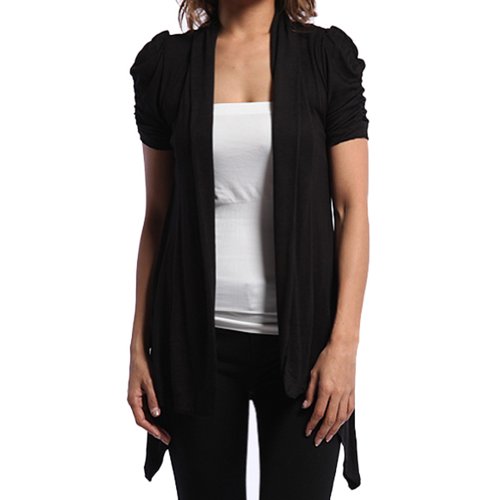 | Rayon Short Sleeves Flyaway Cardigan Shawl Collar Shrug Cardi |