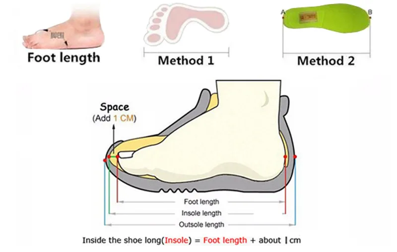 If your kids feet are fat, or you want tou0026nbsp;take extra space for growth, you can add 0.5 cm more.