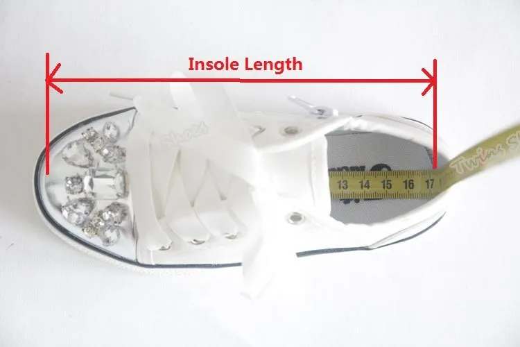We measure the shoe insole length by ruler, like the below photo.u0026nbsp;Then we get the insole length. Please allow the 0.3-0.5 cm error due to manualu0026nbsp;measurement.This below photo is the only method how we measure the insole length, then we write it in ouru0026nbsp;size chart.