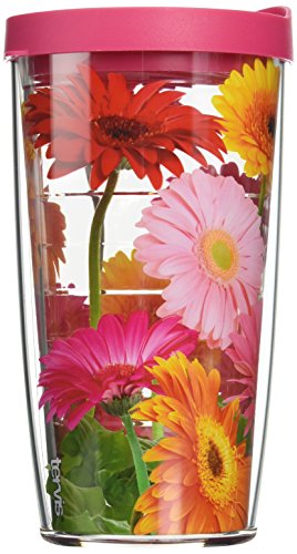 Tervis "Gerbera Daisy" Tumbler with Pink Lid, 16 oz, Clear