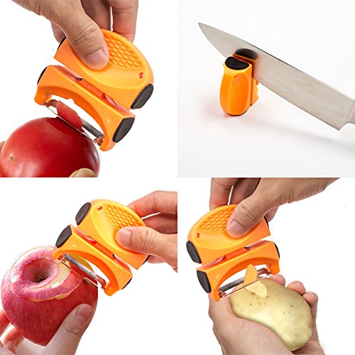 ✔ 2-in-1 MULTIPLE USE: Use it as Peeler or as Knife Sharpener. Light weight and unique design makes it easy to store.