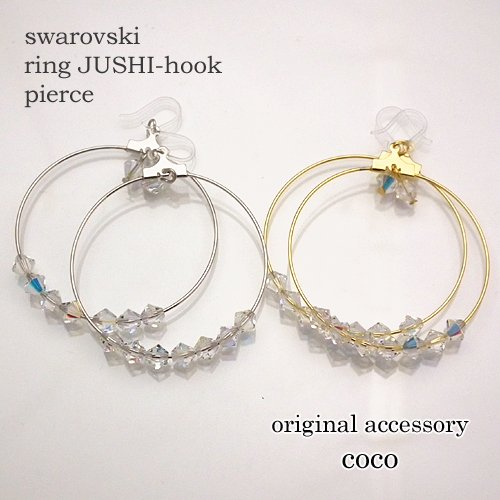 아뜰리에 자《스》 스와로브스키 링 수지 훅 피어스(귀걸이) L 레이디스 스와로브스키 피어스(귀걸이) 금속 알레르기 주판형 #등이다 꾸중 크 수작업 일본제 swarovski