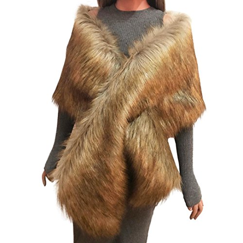 | (Emubody)/Accessories/Scarves/DIRECT FROM USA/Shawls Women Emubody Faux Fox Fur Long Shawl Stole Wrap Shrug Scarf Bridal Wedding |
